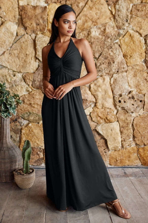 Anita - Elegantmønstret langærmet kjole med V-hals