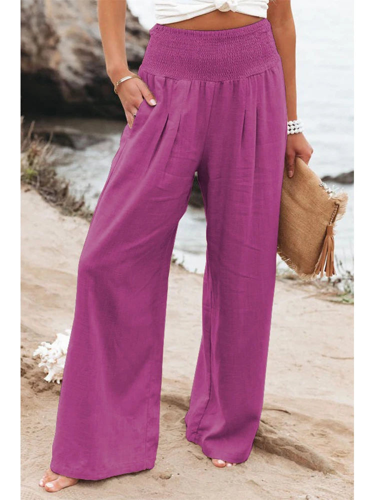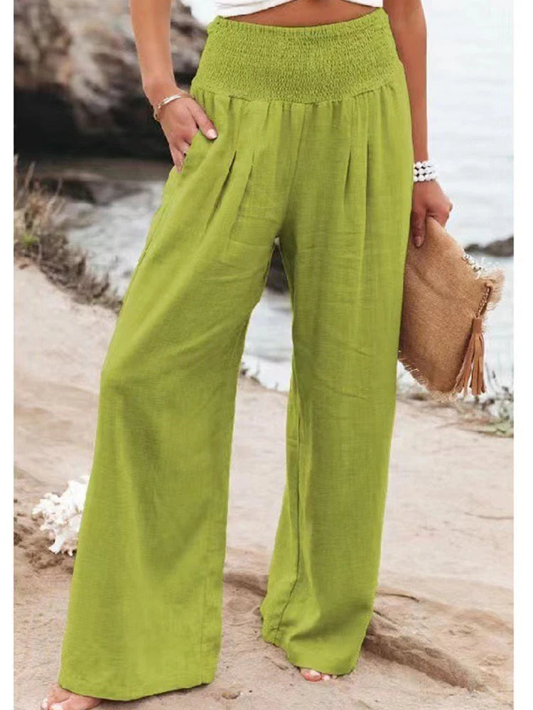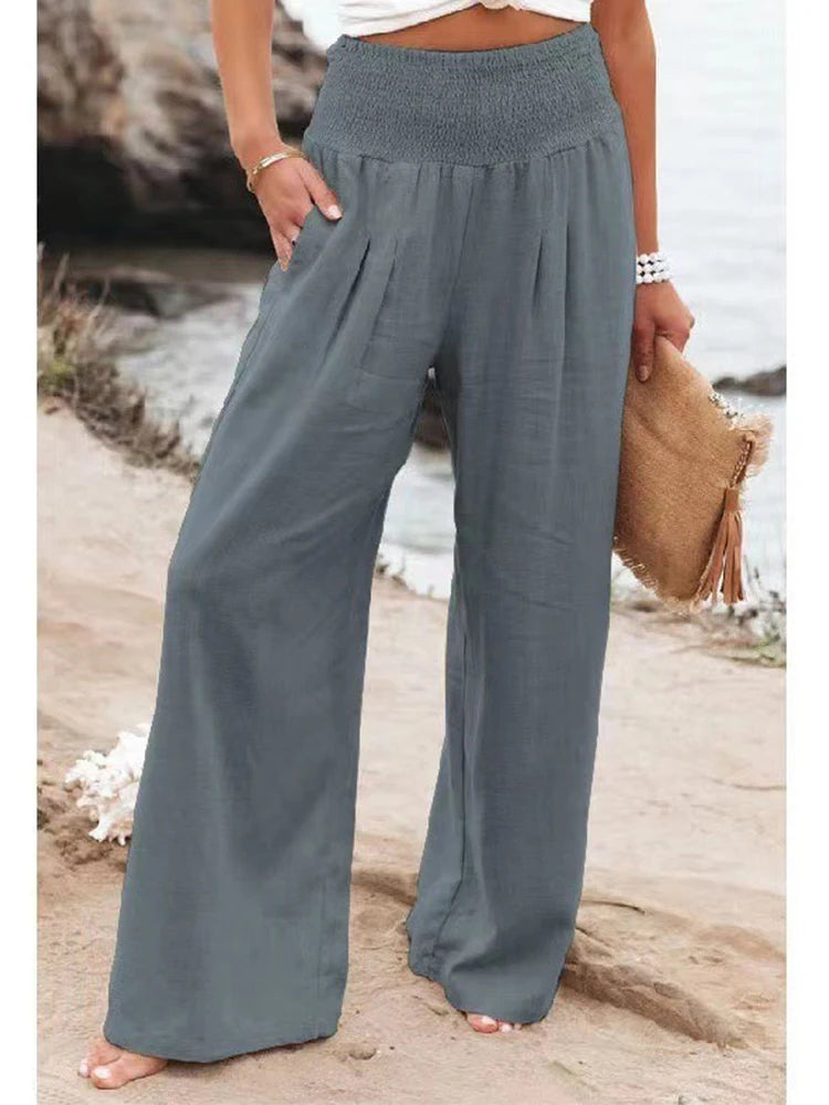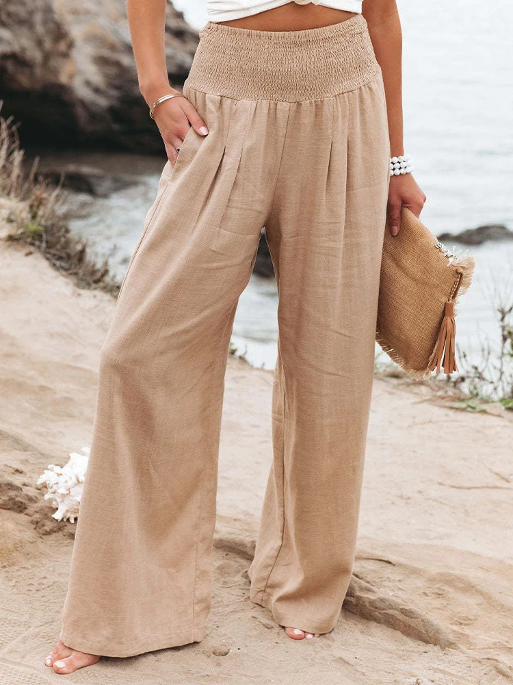 Betreed het seizoen met moeiteloze stijl in onze "Breeze of Elegance" Linnen Broek. Ontworpen voor de moderne vrouw, biedt deze wijde broek een perfecte mix van
